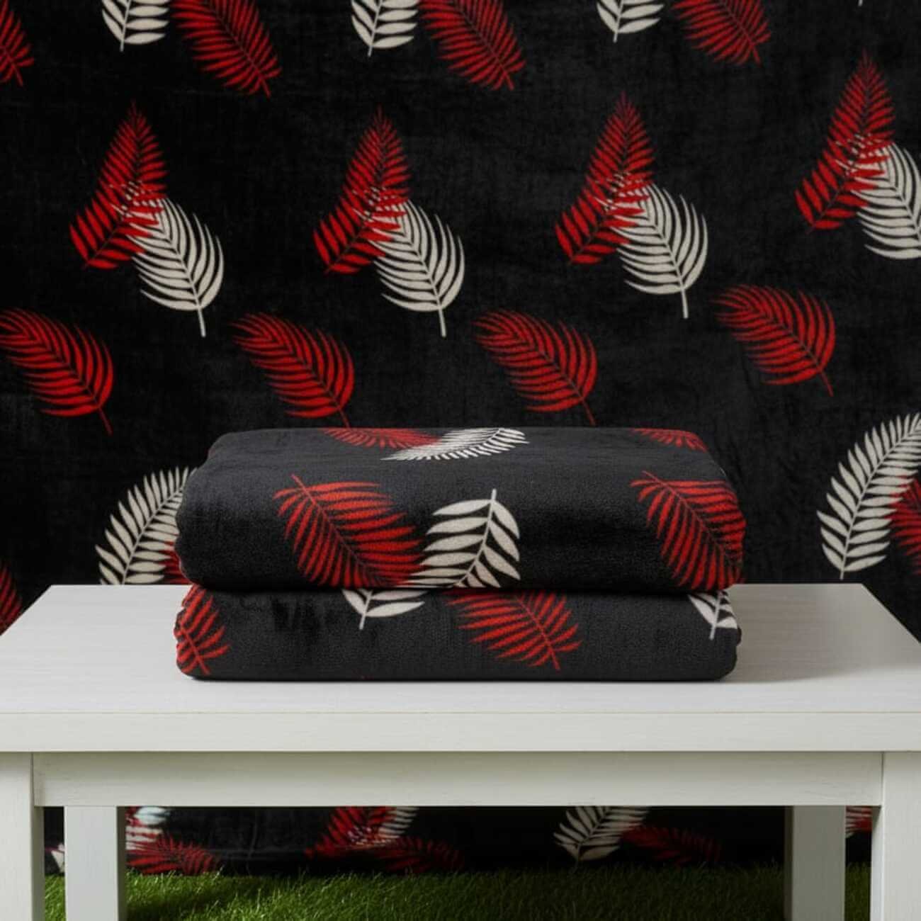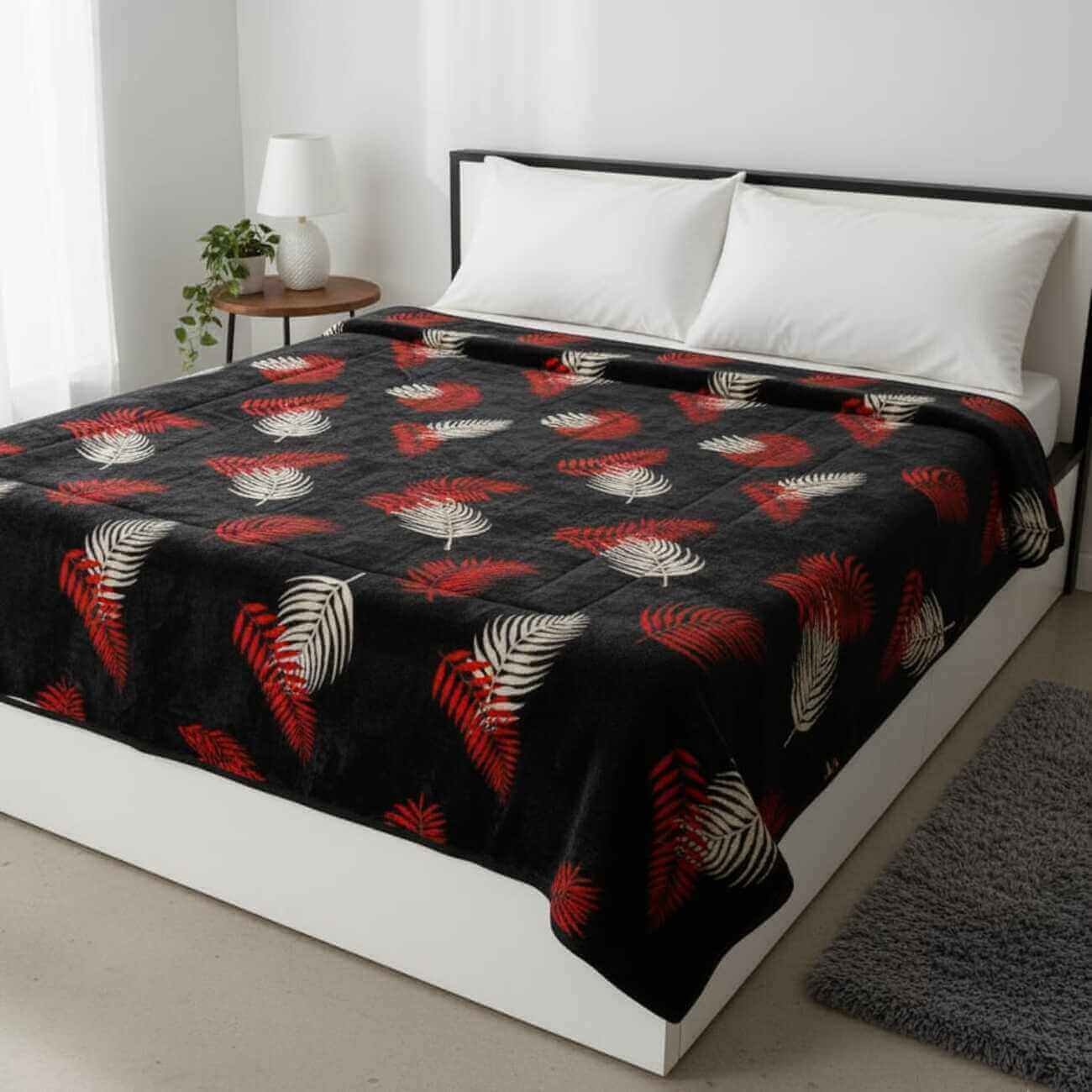 Black With White&Red Leaves Printed AC Comforter – Lightweight & Breathable