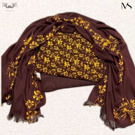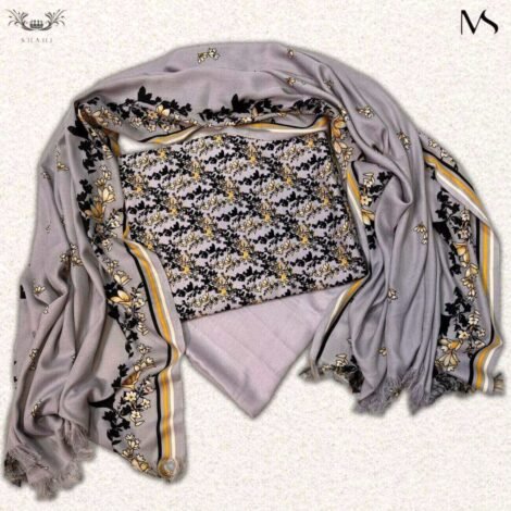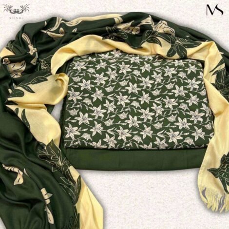 Printed Corduroy 3-Piece Suit with Shawl – Unstitched