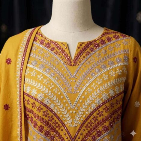 lemon Cambric Cotton 2pc Suit – Unstitched